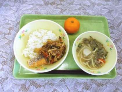 若松鍋は、宮下町にある若松神社のお祭りの名物です。近くで採れた野菜と豚肉で作ります。宵宮(お祭りの前日)に食べるもので、翌日のお祭りに備えて力をつけるため、うどんを入れるようになりました。給食では、うどんを短くして、汁物で食べました。