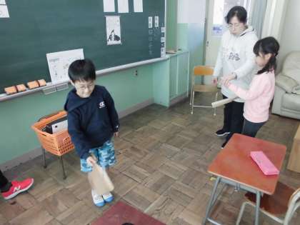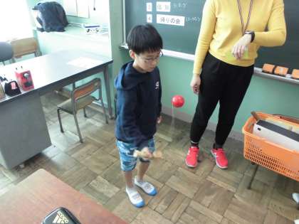 お正月にちなんで、ミッションは、羽根つきやけん玉。