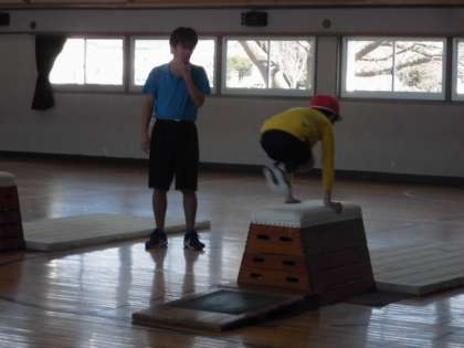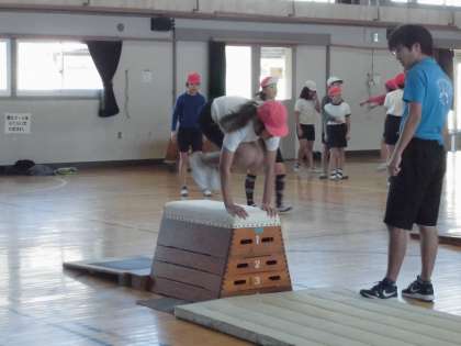 最終段階で跳び箱縦置きを飛べるように頑張りましょう。