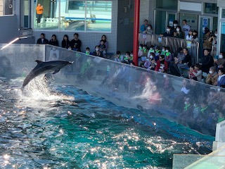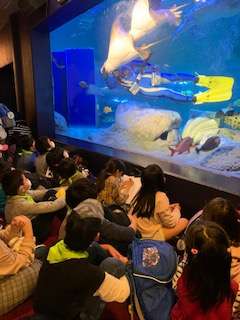 イルカショー・水中ショーも楽しみました。決まりを守って、きちんと行動しています。