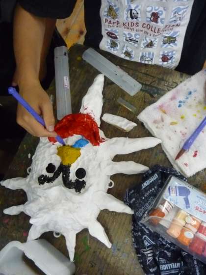 おもしろ仮面の紙粘土がカチカチに固まったので、