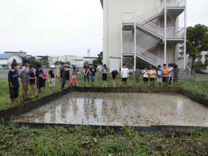 5−1とあさひ学級の5年生で田植えをしました。