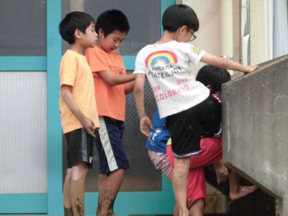 どろどろの足を洗うのも大変ですが、楽しそうでした。