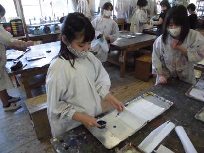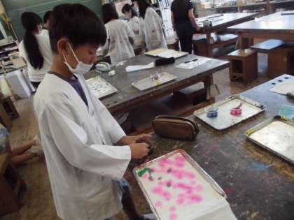1色で染めたり、水玉模様にしたり、全体に色をつけたり...