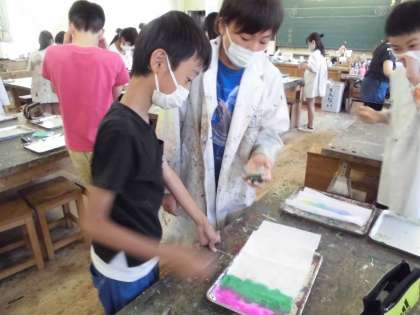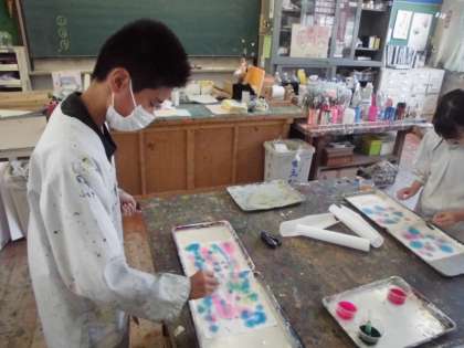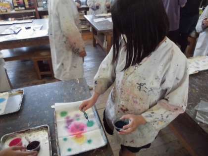1色で染めたり、水玉模様にしたり、全体に色をつけたり...