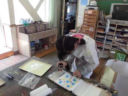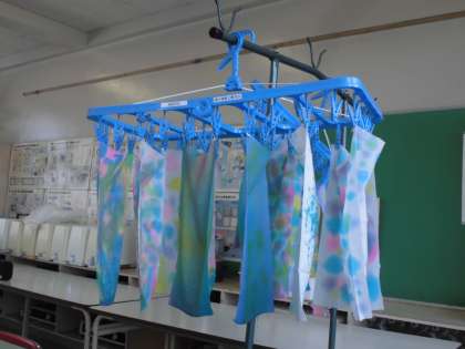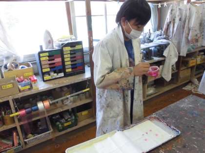 1色で染めたり、水玉模様にしたり、全体に色をつけたり...
