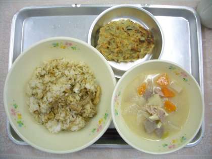 今日は、給食で人気の沖縄郷土料理、“ししじゅうし”です♪ごはんに