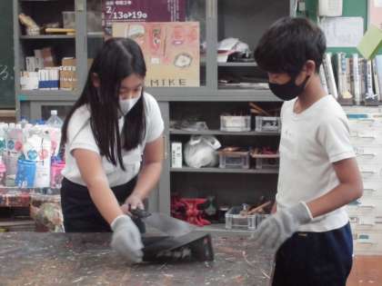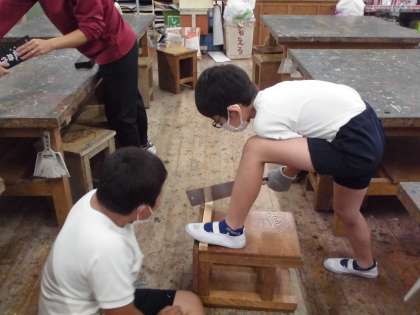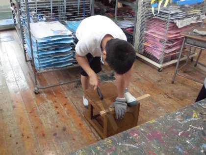 木材を3センチに切り、やすりをかけ、色をつけます。