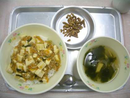 今日は完食率ナンバーワンの、マーボー丼です♪今日も各クラス