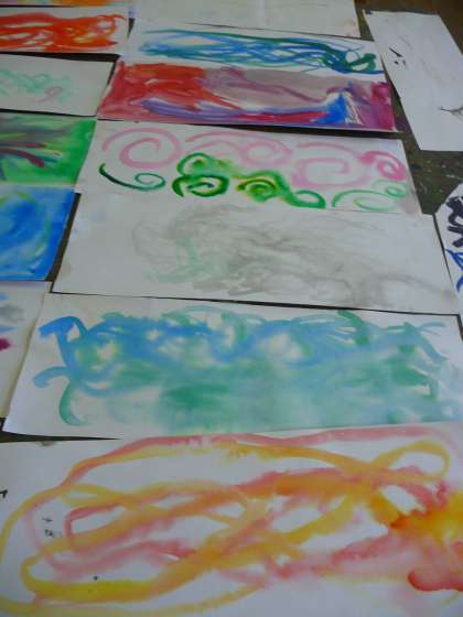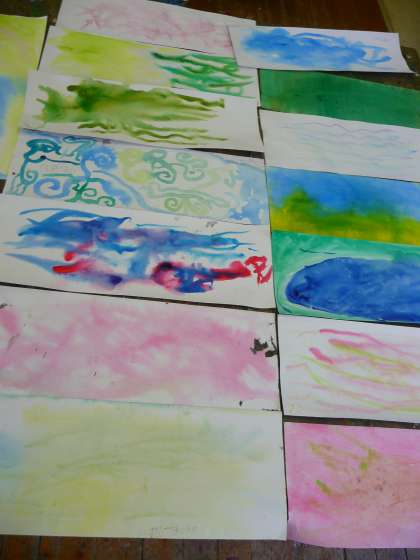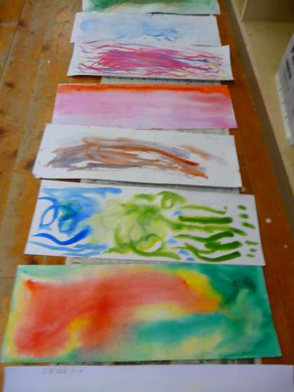水彩絵の具で自分のイメージを豊かに広げていきます。