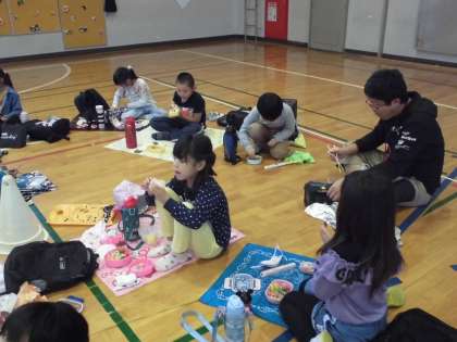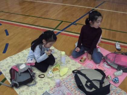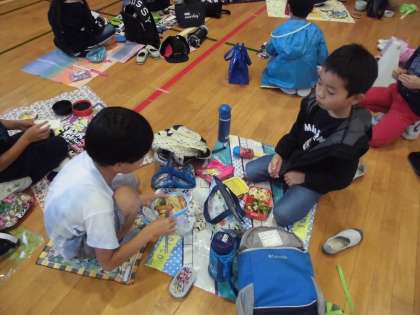 みんなで体育館で食べました。
