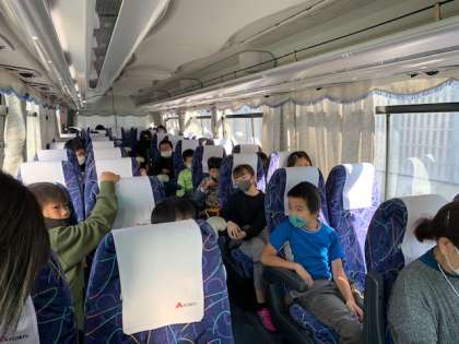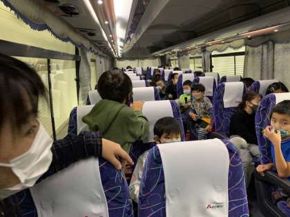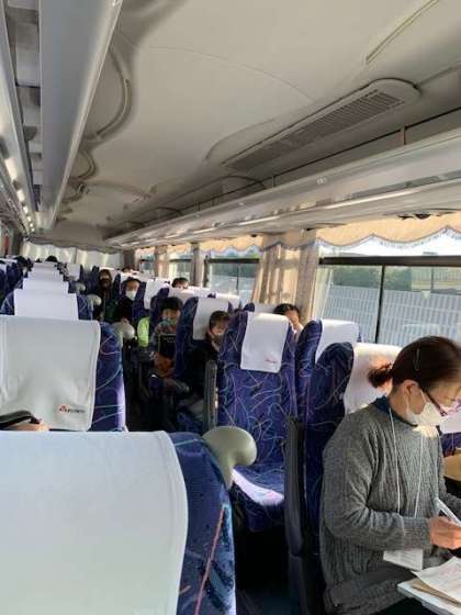 八王子入り、早くもバスレクが始まりました。「鼻歌ゲーム」「しりとりゲーム」