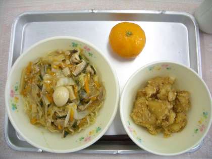今日は大人気のあんかけ焼きそばです♪蒸し中華めんは、油としょうゆを