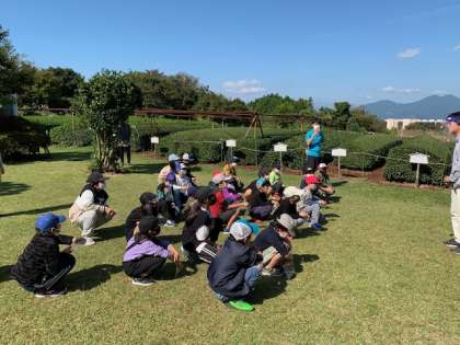 いい天気になりました。日本平から富士山・駿河湾・お茶畑が美しいです。早速、お茶の歴史について学習です。