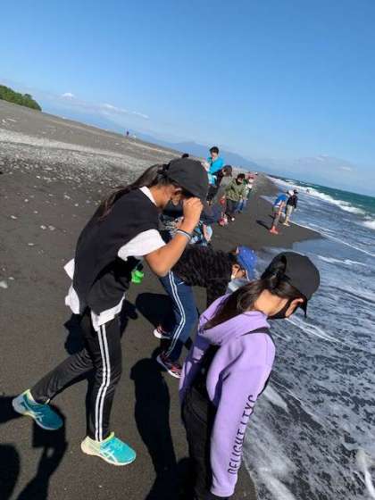 富士山の白、松原の緑、海の青、それぞれが映えて美しい日本の風景の真っ只中です。
