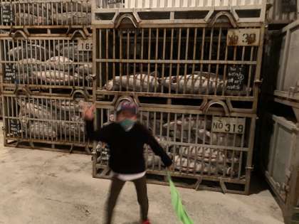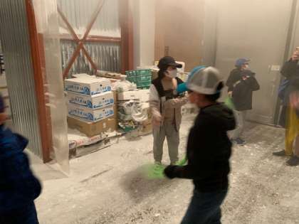 マイナス50℃の世界です。濡れたバンダナを振り回すと凍ってしまいました。