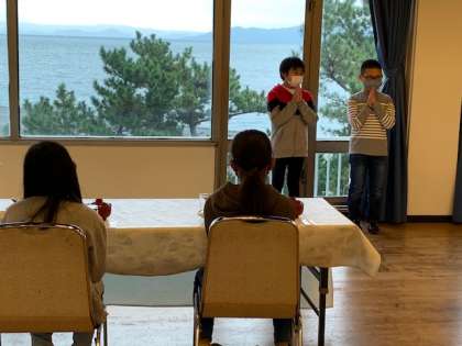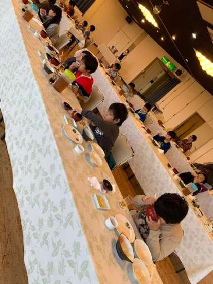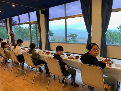 夕食時には見えなかった大海原を見ての朝食です。早朝からの活動でお腹が空いた子が多く、今回も食欲旺盛です。