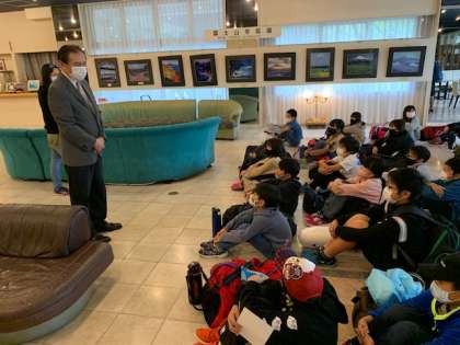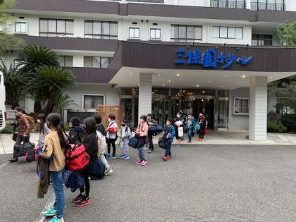 楽しく過ごした宿の方に、ありがとうの気持ちを伝えた閉校式を行い、しらす工場に向けて出発です。