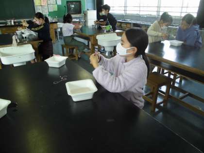 夏から飼育していた蚕の繭から、糸をとりだします。