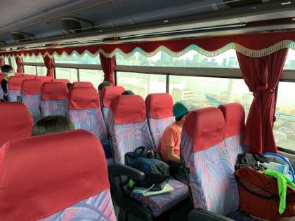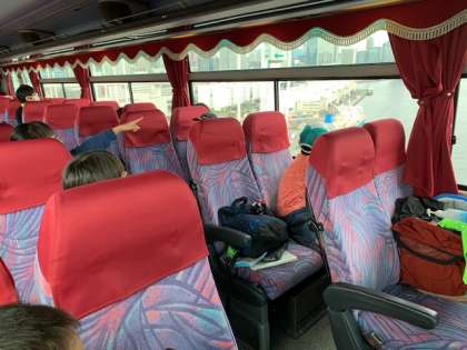 東京タワーを過ぎ、視界が開け海やレインボーブリッジ、スカイツリーが見えて、大興奮。車酔いしている子は一人もいません。