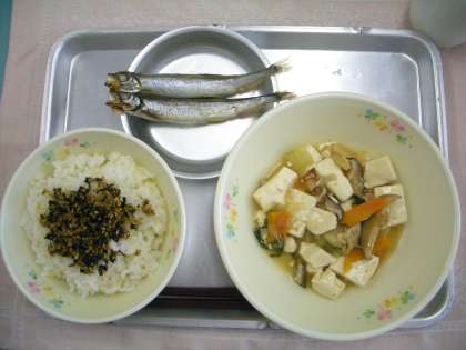 材料としておすすめです♪今日はごはんに、給食室手作りの“ふりかけ”を