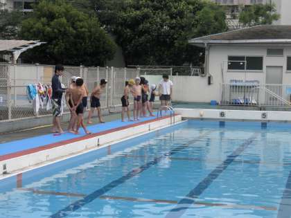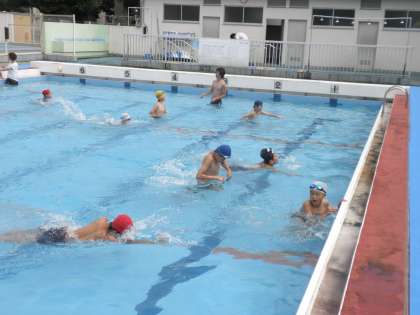 7月1日、この日も八王子市では、午前中9時に30.9度を記録しました。しかし、あさひ学級の児童は、暑さに負けずに、プールで元気よく水泳の授業を受けていました。