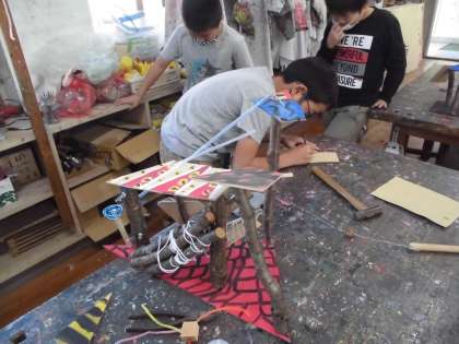 いろいろな材料を使って、仕上げに取りかかります。