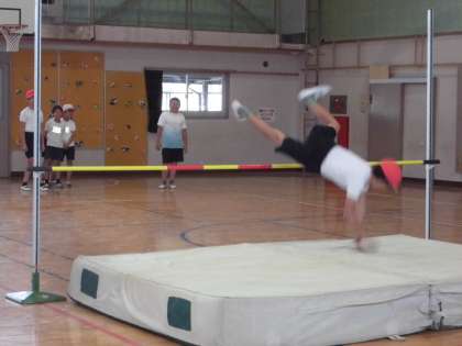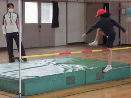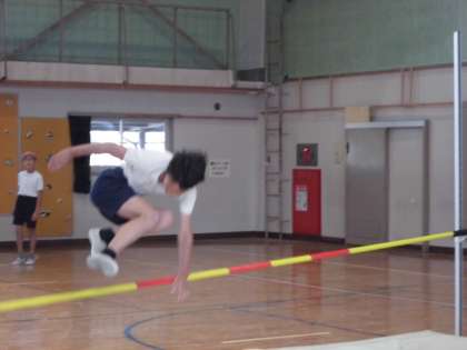 はさみ跳びや、正面跳び、ベリーロールに挑戦していました。