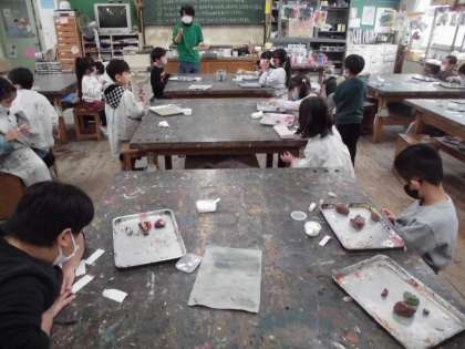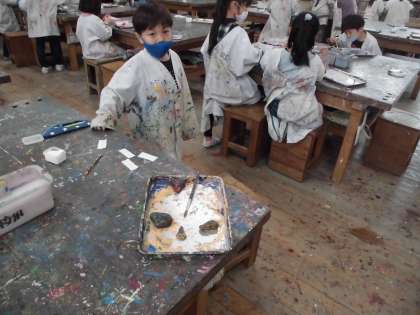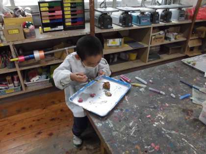 ドライヤーで乾かしたら、ラメのりでお化粧をする。