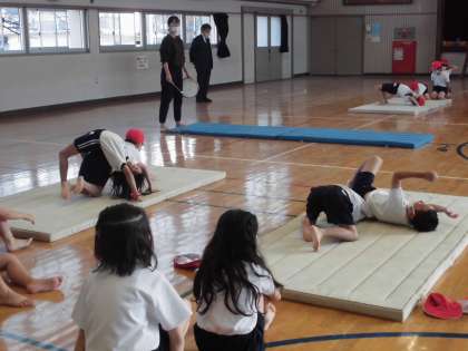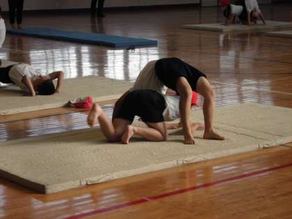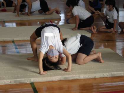 ブリッジをした友達を、トンネルをくぐるように通ります。