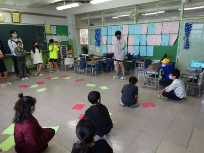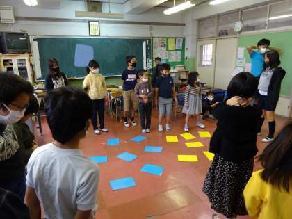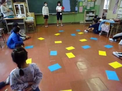 もう一つは、両面の色画用紙をチーム色にひっくり返すゲームです。