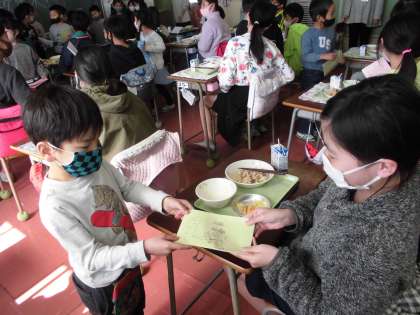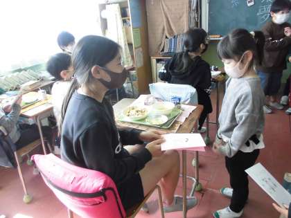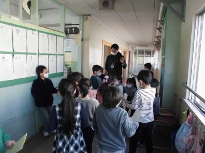 『6年生を送る会』の招待状を、1年生が渡しにいきました。