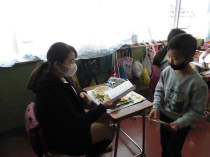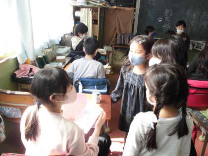 『6年生を送る会』の招待状を、1年生が渡しにいきました。