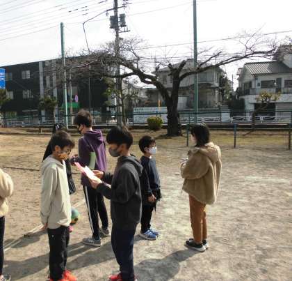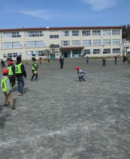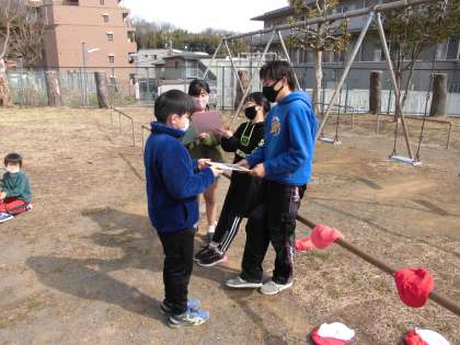 今年は校庭で、なるべく隣との間隔をあけて行いました。