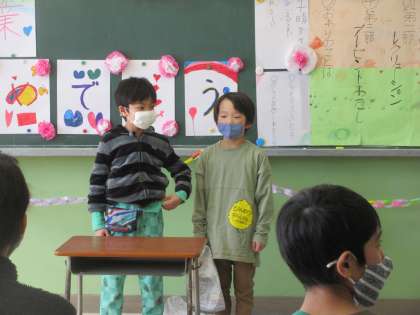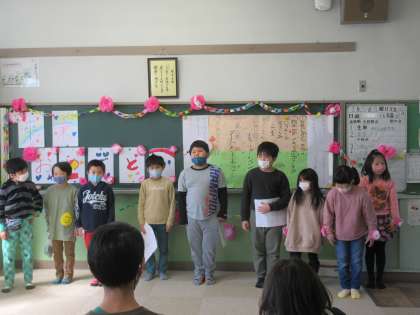 6年生へお祝いや感謝の言葉を述べ、プレゼントを渡しました。