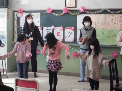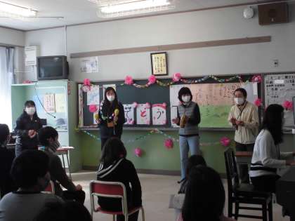 6年生へお祝いや感謝の言葉を述べ、プレゼントを渡しました。