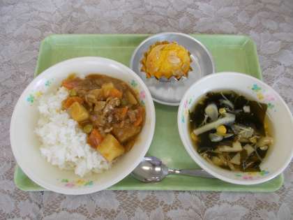 給食の時間に「食育ソング」を聞きながら、「もったいない」を合い言葉に、食べ物の命や作ってくれた人々への感謝を忘れずに、自分の量を残さず食べるように頑張りました!