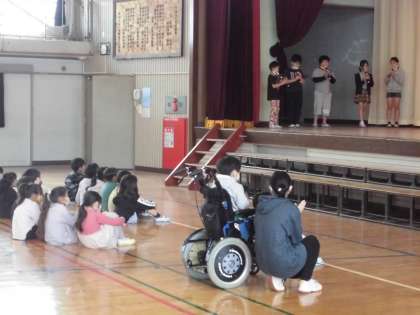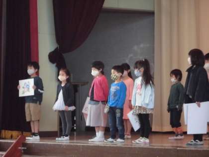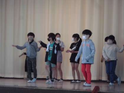 4年生は、合奏とダンスを、6年生は校歌を披露しました。