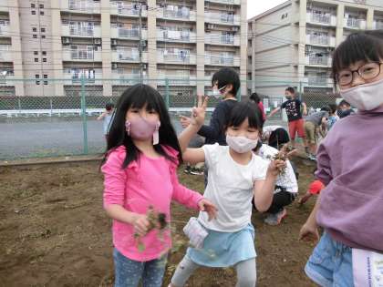 畑の草取りを頑張っていました。何を植えるのか、楽しみですね。