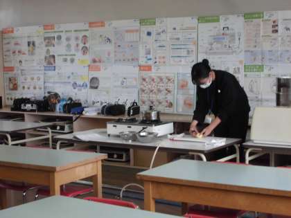 ゆで料理の勉強です。先生がじゃがいもをゆでる工程を見ていました。