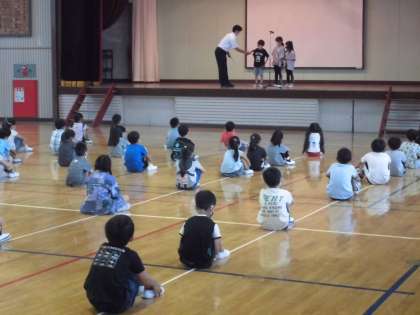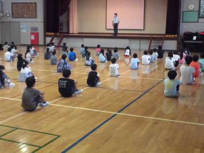 体育館で始業式を行いました。気持ちを切り替え、真剣に話を聞いています。