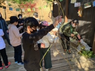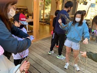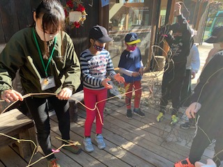 リース作りの最初は、つる(葛)を輪にすることから。なが〜いので、苦戦してます。