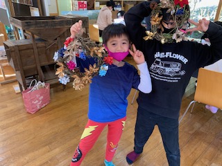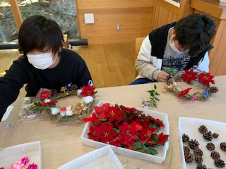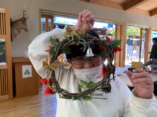 散策チームを迎えて帰ってみると、綺麗なクリスマスリースが仕上がってきました。