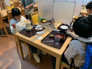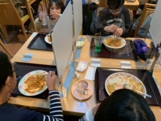 二回目のわくわくビレッジでの昼食です。発券機にも慣れて、スムーズに注文できました。午前中の活動が充実していたので、もう昼食?という感じでしたが、みんな相変わらず食欲旺盛です。