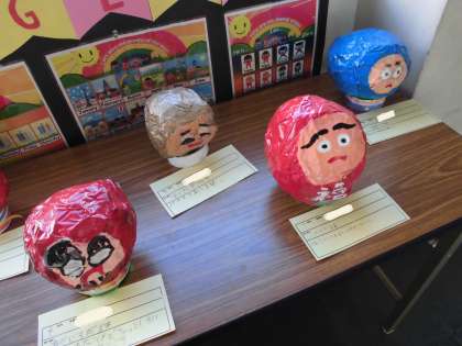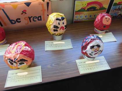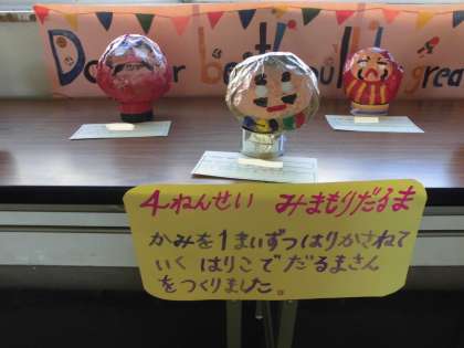個性あふれるだるまたちが、昇降口に展示されていました。