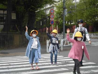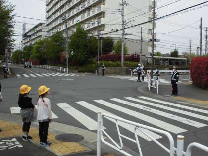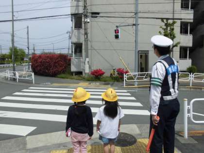 横断歩道の渡り方、歩道の歩き方など指導を受けながら