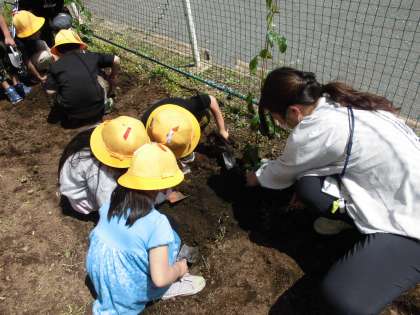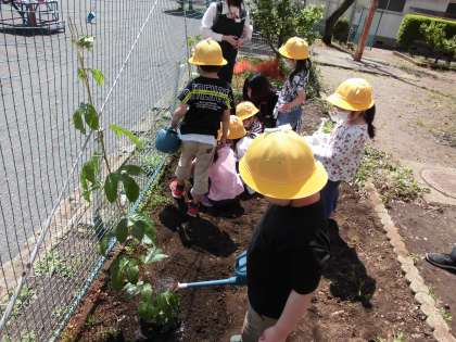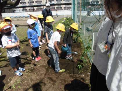ご指導いただき、1年生が植えて、水やりをしてくれました。