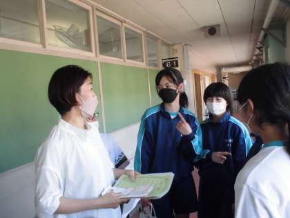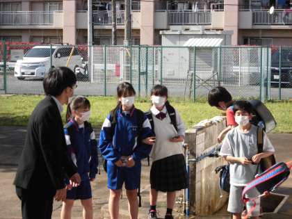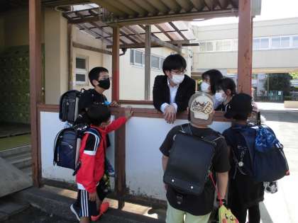 離任式後は、卒業生、保護者の方とも別れを惜しんでいました。