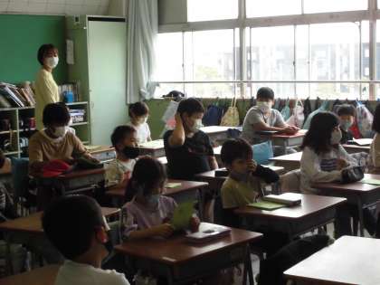 たてわり班ごとに登るので、注意や確認のため集会がありました。