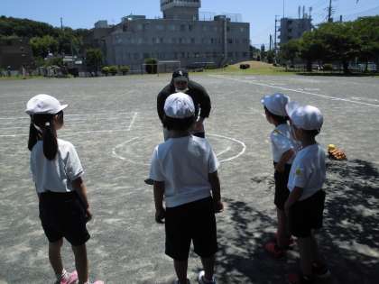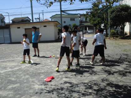 テントをはり、投げる子ども以外は日陰に居るよう心掛けました。